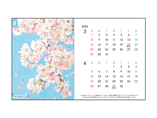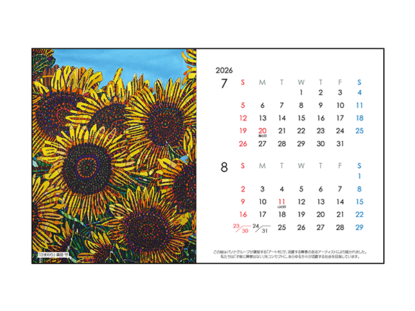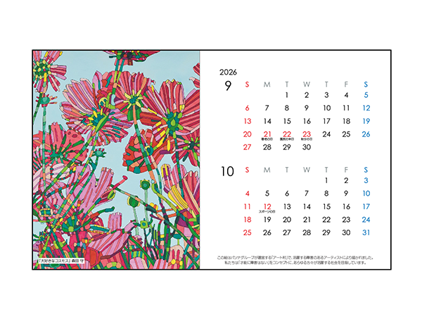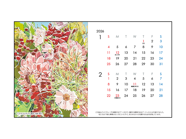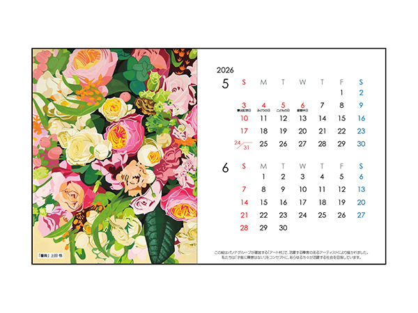 「花」をテーマに色とりどりの作品を描いたカレンダー。