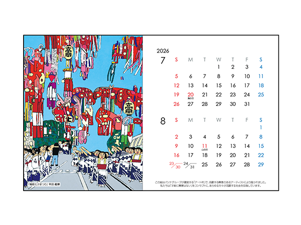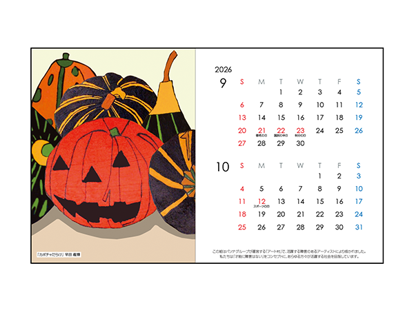 アート村カレンダーには、ご自身やご家族、ご友人の名入れや、企業・団体・サークル名またはお好きな言葉等の名入れが可能です。世界でひとつだけのオリジナルカレンダーを、大切な方へのプレゼントや、企業のノベルティグッズとして、ぜひご利用ください。